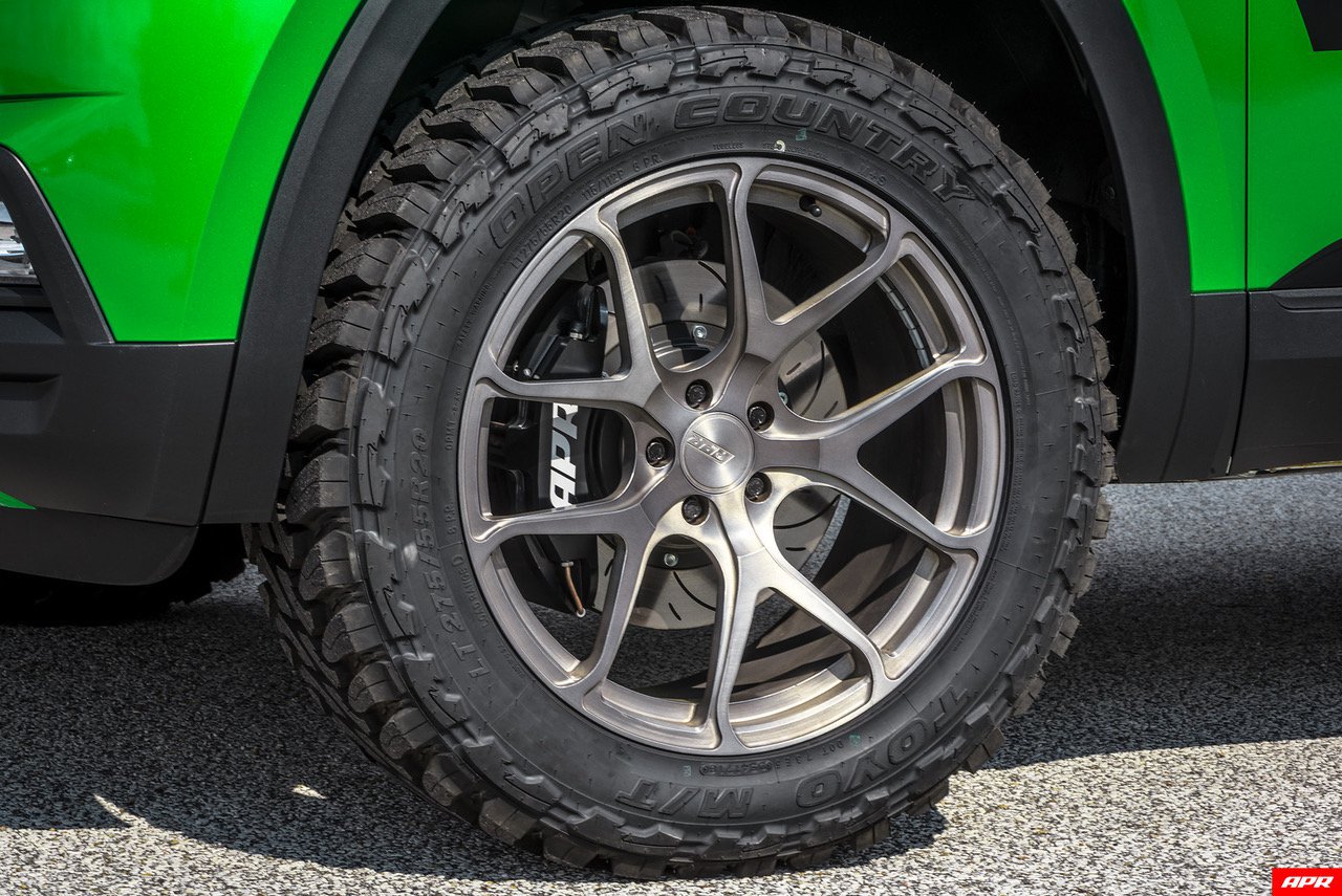 Вдобавок APR заменили стандартную подвеску Atlas, подняв автомобиль на 38 мм, что в свою очередь позволило установить новые легковесные 20-дюймовые диски и шины Toyo Open Country. Наконец, комплект апгрейдов завершает виниловая оболочка для кузова, разработанная APR и установленная американскими мастерами Digital Precision.